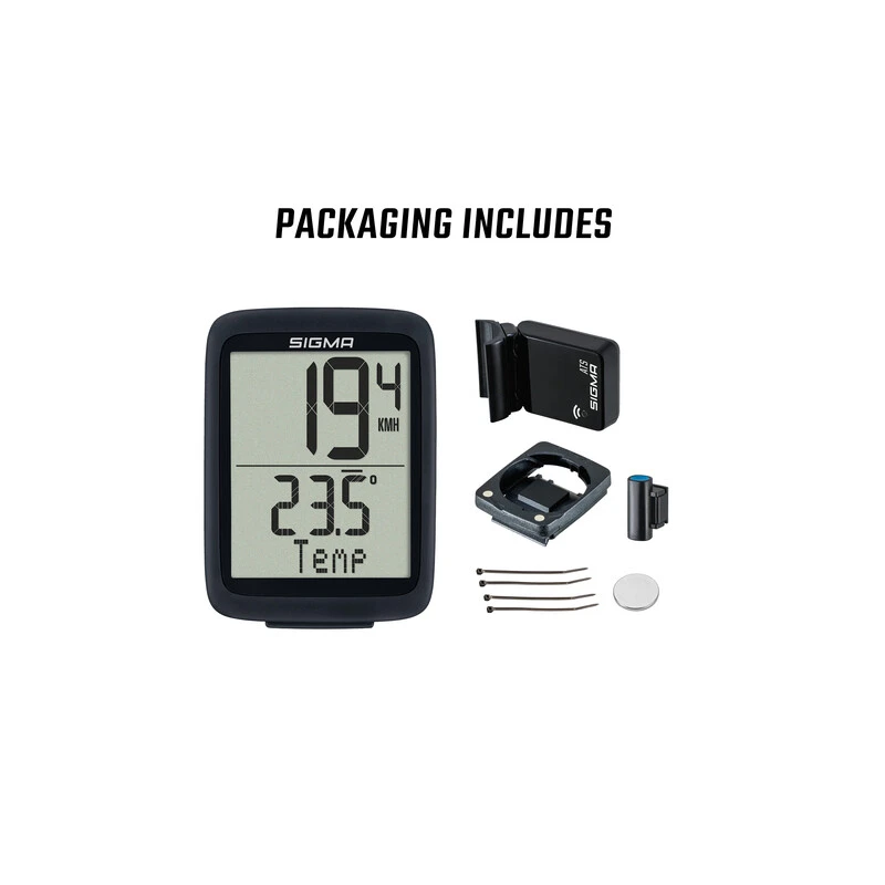 Lieferumfang: Fahrrad Computer (inkl. Batterie), Halterung für Funk-Modell, ATS-Sender ( inkl. Batterie), Magnet, Befestigungsmaterial, Bedienungsanleitung